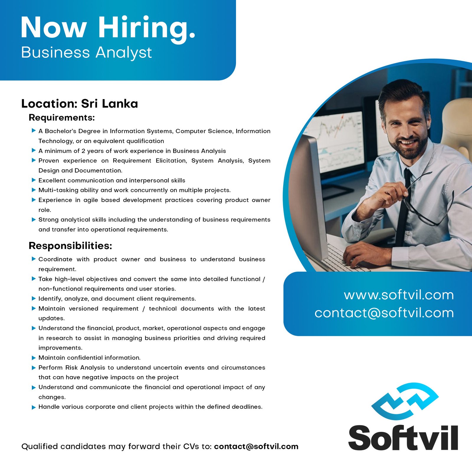 Business AnalystJob Role– Coordinate with product owner and business to understand business requirement.– Take high-level objectives and convert the same into detailed functional / non-functional requirements and user stories.– Identify, analyze, and document client requirements.– Maintain versioned requirement / technical documents with the latest updates.– Understand the financial, product, market, operational aspects and engage in research to assist in managing business priorities and driving required improvements.– Maintain confidential information.– Perform Risk Analysis to understand uncertain events and circumstances that can have negative impacts on the project– Understand and communicate the financial and operational impact of any changes.– Handle various corporate and client projects within the defined deadlines.Qualifications & Experience– A Bachelor’s Degree in Information Systems, Computer Science, Information Technology, or an equivalent qualification– A minimum of 2 years of work experience in Business Analysis– Proven experience on Requirement Elicitation, System Analysis, System Design and Documentation.– Excellent communication and interpersonal skills– Multi-tasking ability and work concurrently on multiple projects.– Experience in agile based development practices covering product owner role.– Strong analytical skills including the understanding of business requirements and transfer into operational requirements.