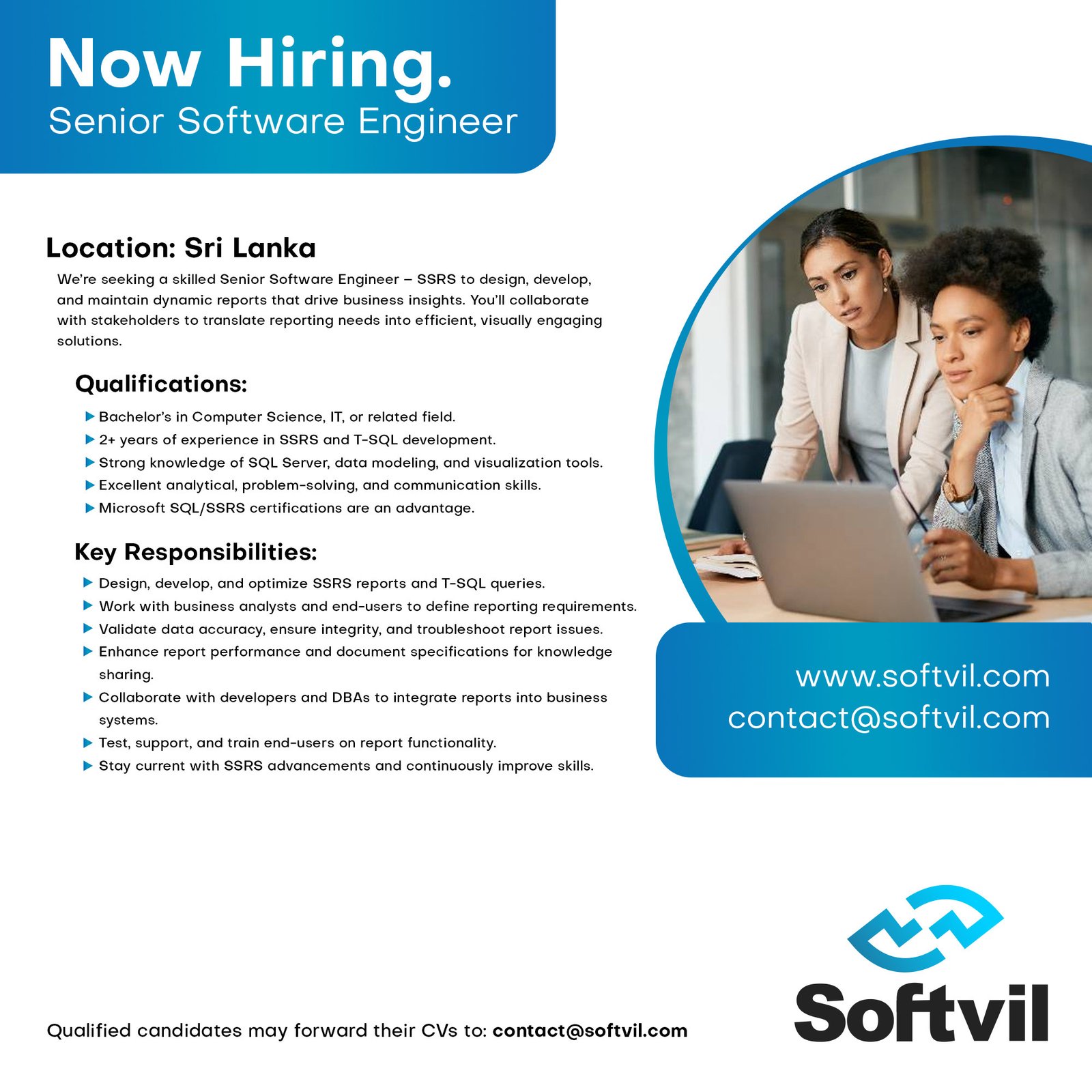 Primary job roleThe Senior Software Engineer – SSRS will be responsible for designing, developing, testing, and maintaining reports using SSRS to meet business requirements. The role holder will work closely with stakeholders to understand their reporting needs and deliver high-quality, visually appealing reports.Main duties/responsibilitiesDesign, develop, and maintain reports using SQL Server Reporting Services (SSRS).Create and modify T-SQL queries to extract and manipulate data for reporting purposes.Collaborate with business analysts and end-users to understand reporting requirements.Analyze complex datasets to ensure accurate and meaningful presentation of information in reports.Perform data validation and ensure data integrity in reporting solutions.Optimize and fine-tune existing reports for improved performance.Identify and resolve issues related to data retrieval and report rendering.Document report specifications, data sources, and report metadata.Maintain documentation for future reference and knowledge sharing.Work closely with other developers, database administrators, and business analysts to ensure seamless integration of reports into business processes.Provide support and training to end-users on report usage.Conduct thorough testing of reports to ensure accuracy and reliability.Troubleshoot and resolve any issues identified during the testing phase.Stay abreast of industry trends and updates related to SSRS and reporting tools.Continuously enhance skills and knowledge in SSRS and related technologies.Experience2+ years of experience in SSRS report development and SQL, with a track record of successful implementations.Proven experience in SSRS report development and T-SQL scripting.Experience with other reporting tools and data visualization techniques.